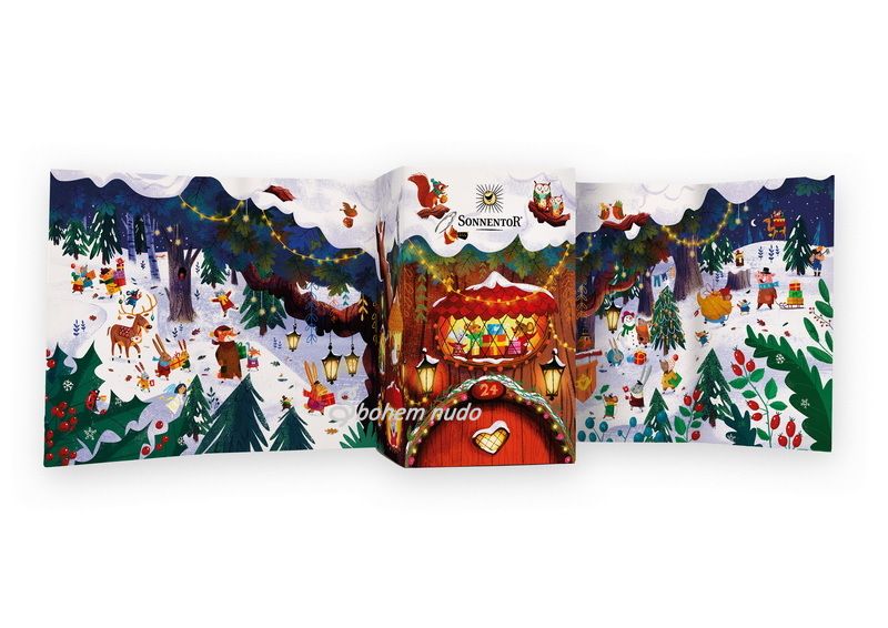 Ručně skládaný Sonnentor Adventní kalendář® s 24 různými druhy biočajů vás letos ohromí svým novým, světáckým kabátkem. Každý adventní den se můžete těšit nejen na novou básničku na čajovém přebalu, ale také na speciální online obsah: od videoreceptů přes digitální hry až po soutěže a odměny. Po rozložení krabičky objevíte okouzlující vánoční ilustrace, které vás budou inspirovat k večernímu vyprávění pohádkových příběhů u šálku hřejivého čaje.
