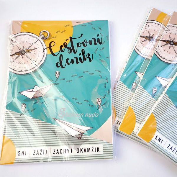 Cestovní deník od Jitky Štádlerové ve formátu A5 s 80 tečkovanými stránkami a samolepkami - volné listy pro použití v kroužkových zápisnících.