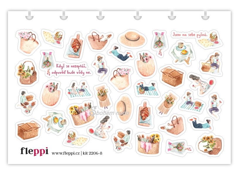 Aršík s obrázky piknikovových potřeb a postaviček na dece pochází z kitu červen 2022