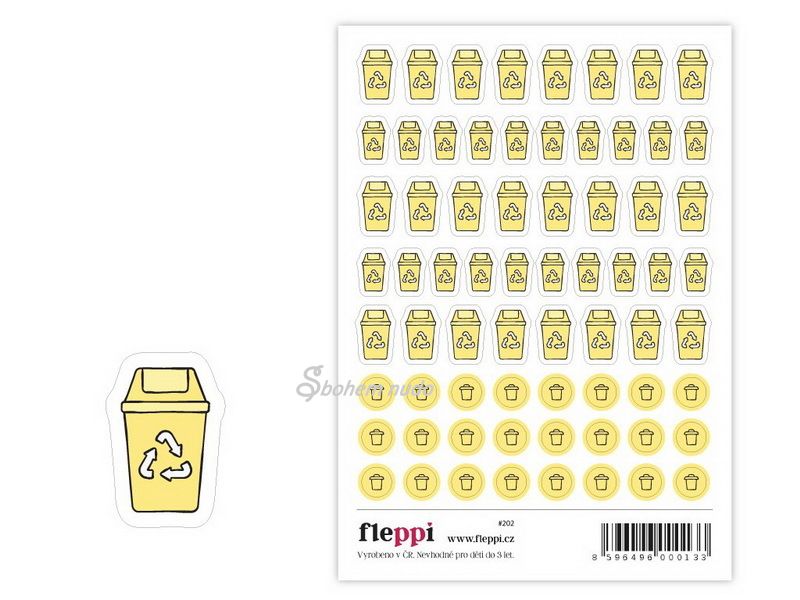Samolepky s obrázky popelnic pro tříděný odpad slouží k označení v diáři či kalendáři, kdy máte vynést koš, případně datum svozu odpadu.