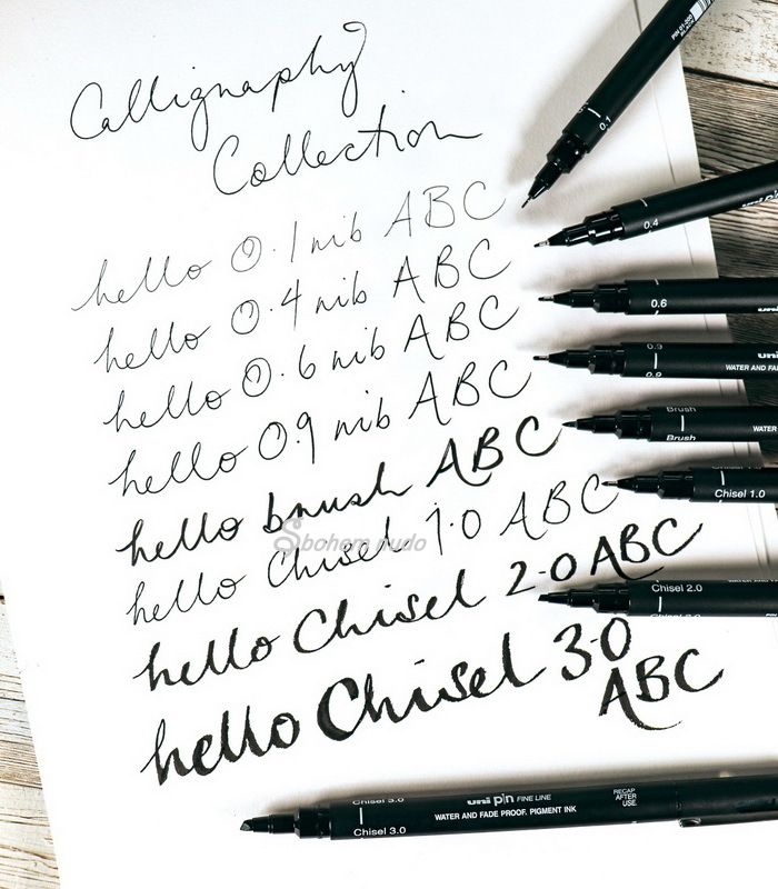 Tenké linery ve 4 velikostech jsou vhodné pro detaily, tenké čáry a lze je použít i v šablonách. Brush pen má měkčí ohebný hrot a lehce vykouzlíte tenkou i tlustou čáru díky různému tlaku na fix. Chisel jsou popisovače se zkoseným hrotem, jsou vhodné pro tzv. gotická písma, kde tenkou a silnou čáru vytváříte pouze otočením hrotu.