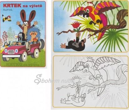 Omalovánka o rozměru A5 s vnitřními obrázky na šířku obsahuje 8 listů s 8 černobílými obrázky krtka a zajíčka od Zdeňka Milera. Ke každému obrázku je barevná předloha.
