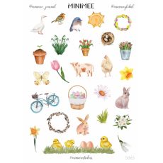 Samolepkový arch od MINIMEE o velikosti A5 s vyříznutými samolepkami, které lze lehce odlepit a nalepit do diáře, do zápisníku, použít na scrapbook apod. Samolepky se perfektně hodí k papíru zápisníku MINIMEE.