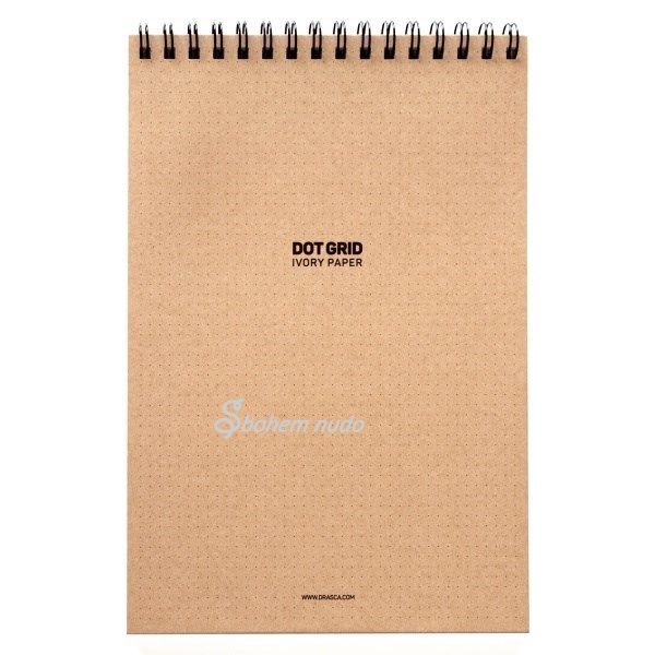 Skicák DOT GRIP IVORY PAPER má přední stranu z kraftového papíru 300g/m2, zadní strana je z pevného kartonu (1,5mm) polepeného kraftovým papírem.