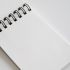 Skicák s kroužkovou vazbou na horní straně s krémovými tečkovanými listy.
